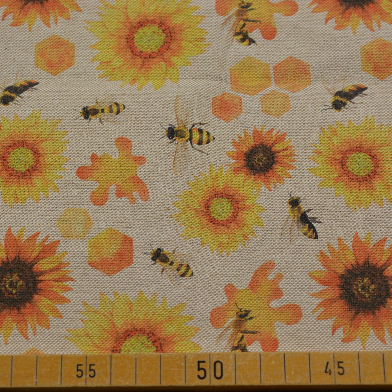 Dieser hochwertige Dekostoff mit fröhlichem Sonnenblumen- und Bienenmotiv bringt sommerliche Leichtigkeit in jedes Zuhause. Die detailreichen Drucke in warmen Gelb- und Orangetönen auf hellem Untergrund wirken lebendig und freundlich. Der Stoff überzeugt durch seine stabile Qualität und eignet sich ideal für dekorative Nähprojekte im Innenbereich.