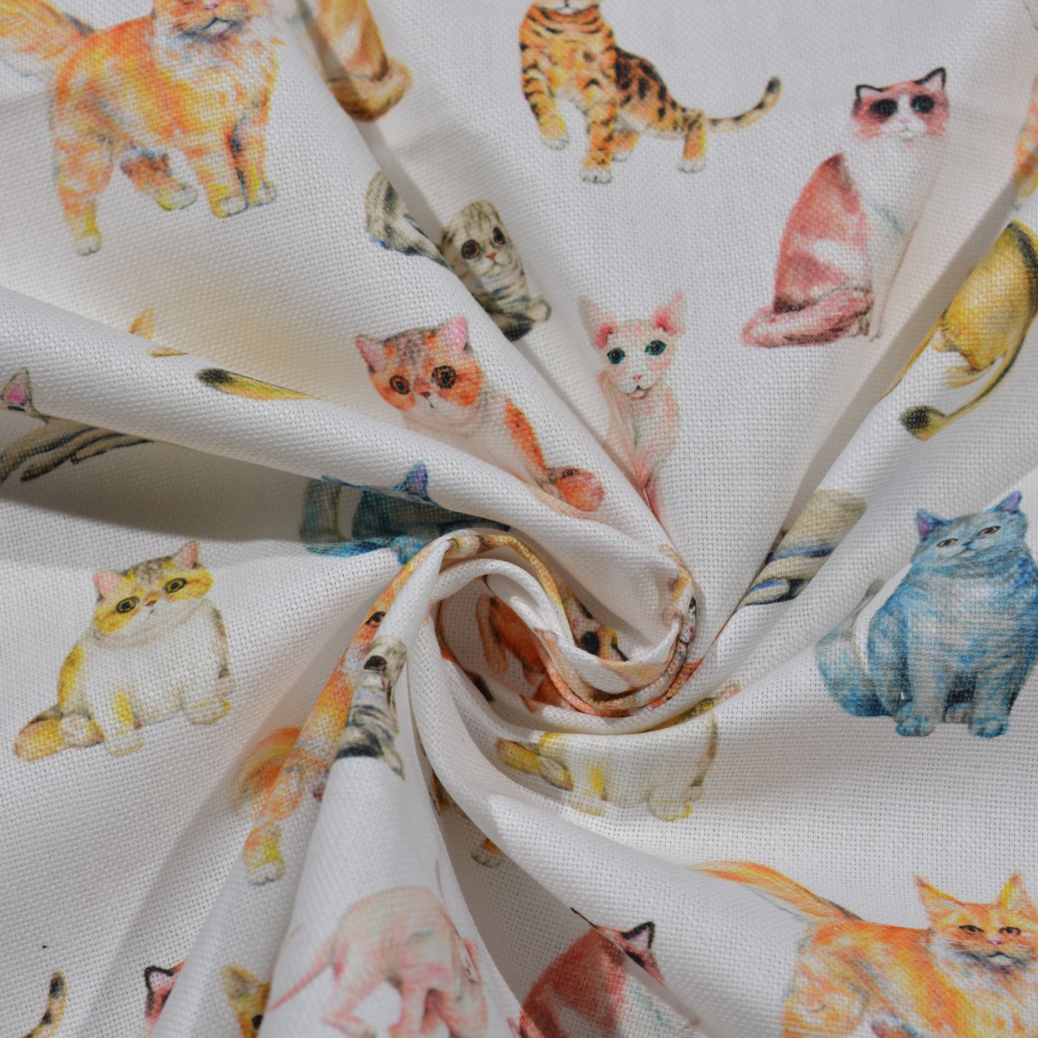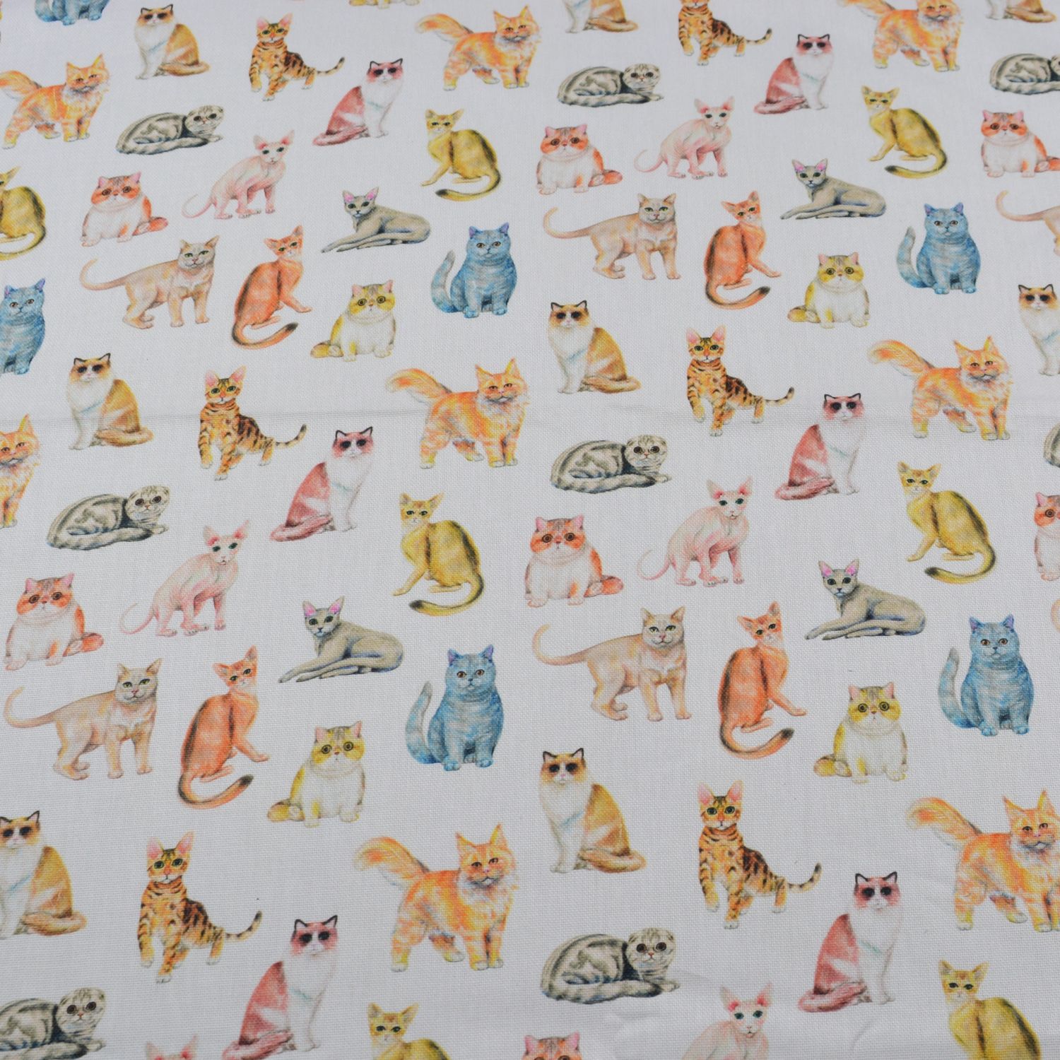 Dekostoff „Rocco“ – Bunte Katzen auf Weiß