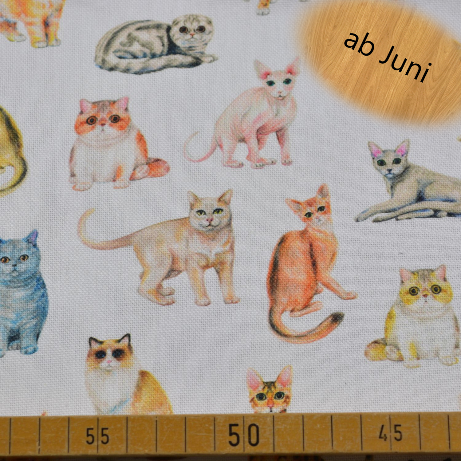 Dekostoff „Rocco“ – Bunte Katzen auf Weiß