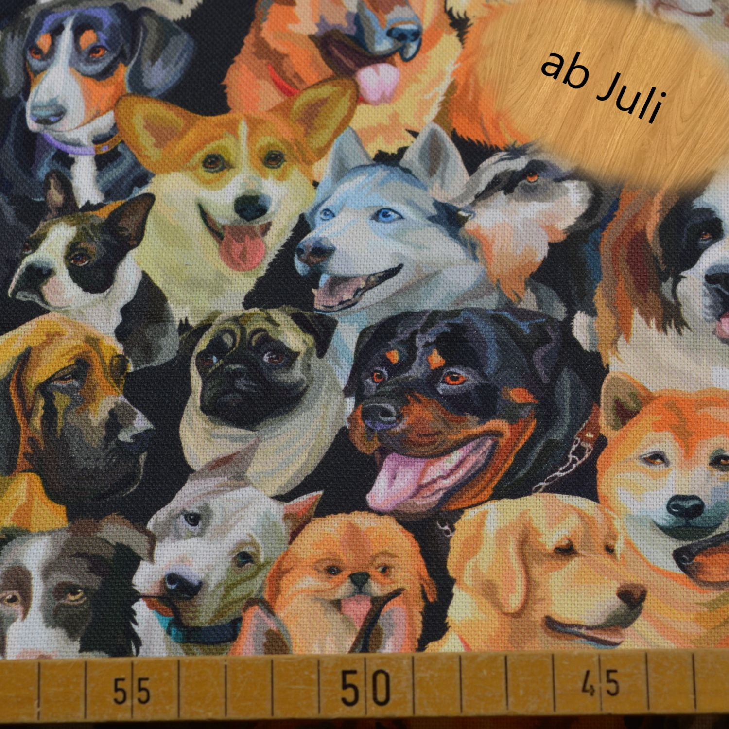 Ideal geeignet für Kissen, Taschen, Polsterarbeiten oder besondere Wohnaccessoires – perfekt für Hundeliebhaber und alle, die auffällige Designs schätzen.