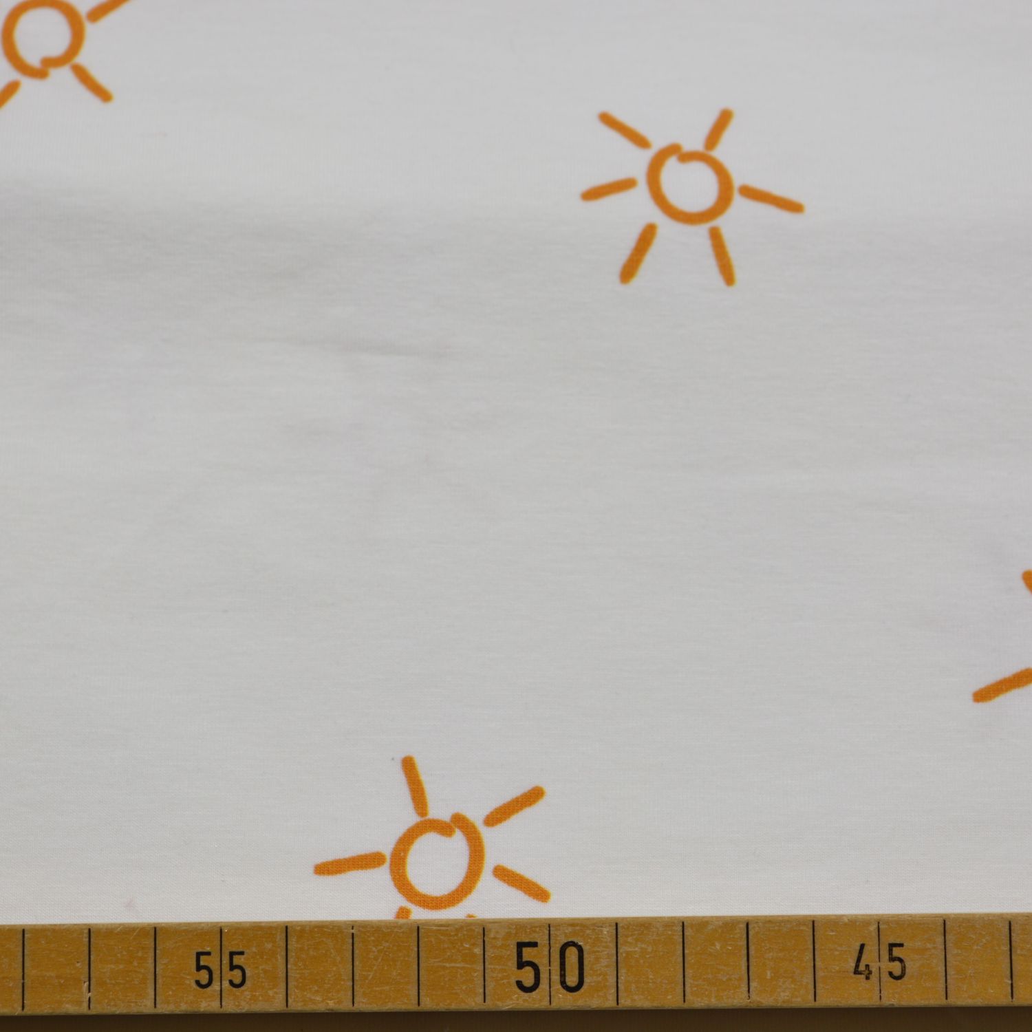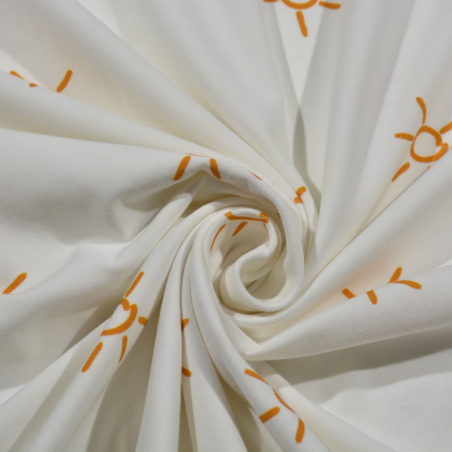 Dieser hochwertige Baumwoll-Jersey überzeugt durch seine angenehme Weichheit, gute Elastizität und den hohen Tragekomfort. Der Stoff besteht aus Baumwolle mit Elasthananteil und eignet sich ideal für bequeme, alltagstaugliche Bekleidung. Das feine, frische Design mit kleinen Sonnenmotiven verleiht dem Jersey eine freundliche, moderne Ausstrahlung.