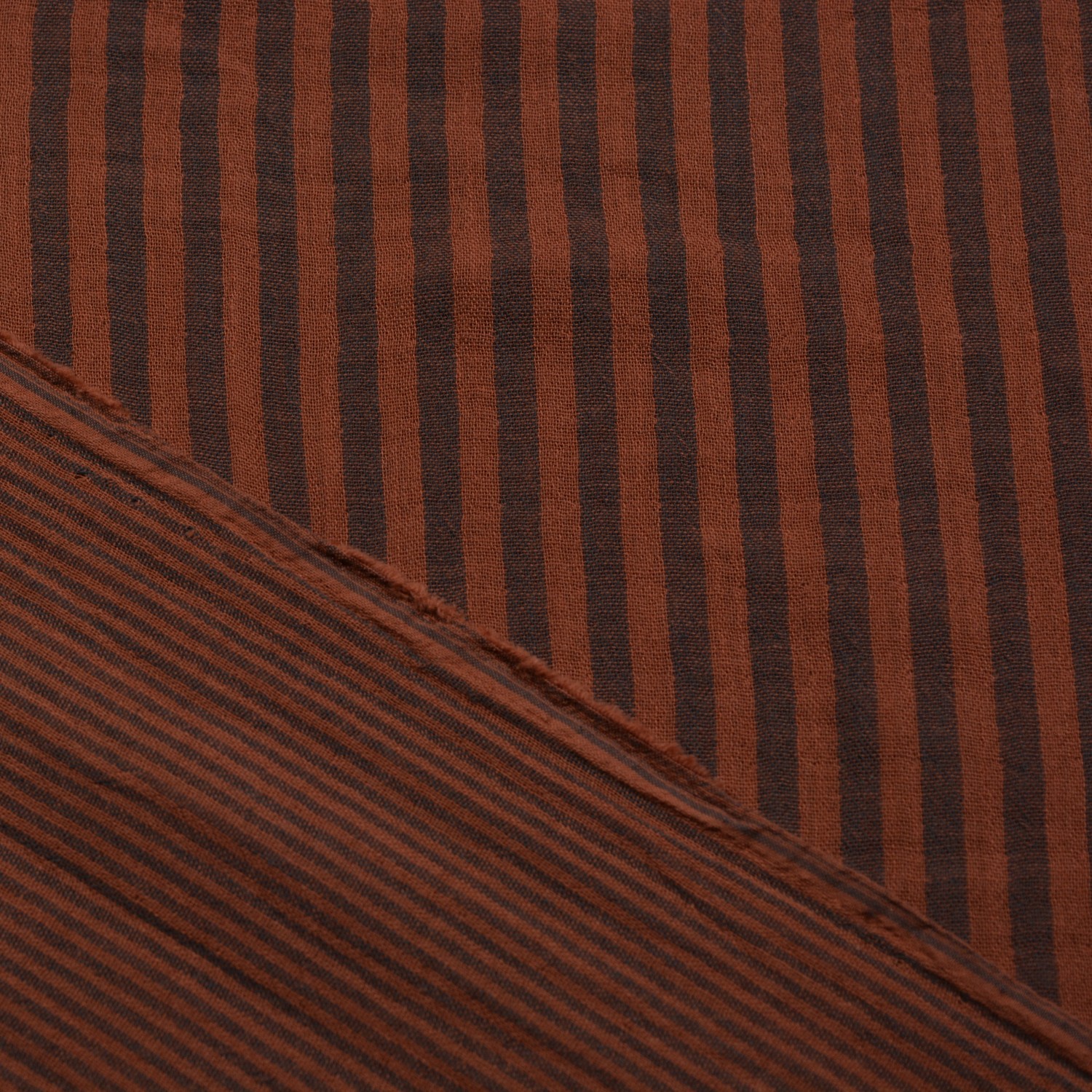 Dieser hochwertige Musselin Doubleface besteht aus 100% Baumwolle und bietet ein elegantes Streifenmuster in den warmen Farbtönen Charcoal und Toffee. Dank der garngefärbten Verarbeitung unterscheidet sich die Streifenbreite auf der Vorder- und Rückseite, wodurch der Stoff vielseitig einsetzbar ist. Die weiche, atmungsaktive Qualität macht ihn ideal für Kleidungsstücke wie Blusen, Tücher und sommerliche Mode sowie für stilvolle Heimtextilien.