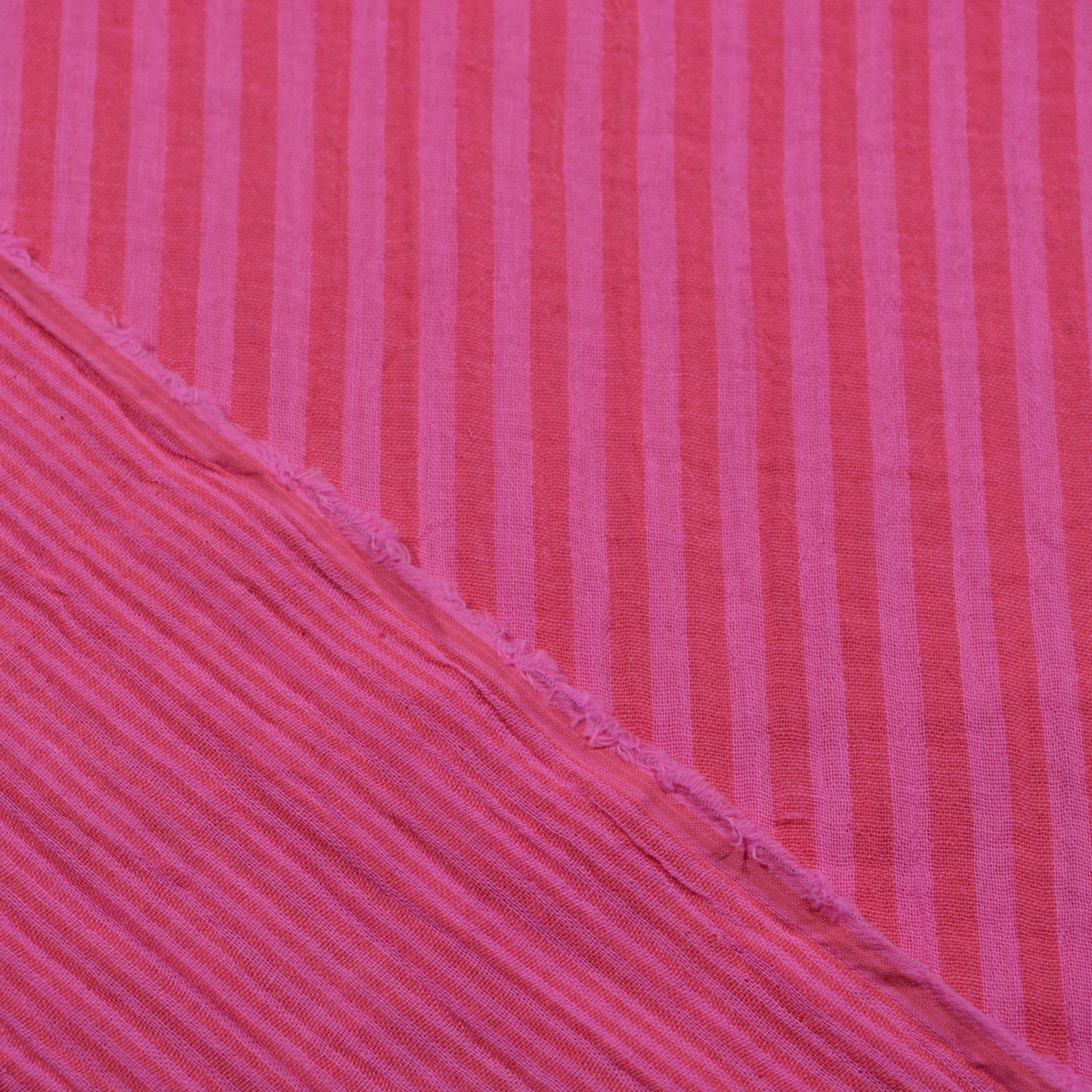 Dieser hochwertige Musselin Doubleface aus 100% Baumwolle besticht durch seine harmonische Farbkombination aus Candy und Hibiscus. Die garngefärbte Verarbeitung sorgt für ein wunderschönes, lebendiges Streifenmuster, das sich auf Vorder- und Rückseite in der Breite unterscheidet. Die weiche, atmungsaktive und hautfreundliche Qualität macht diesen Stoff ideal für sommerliche Kleidung, Tücher, Blusen, Kinderbekleidung und leichte Heimtextilien. Dank der doppellagigen Webart bietet der Stoff eine angenehme Haptik und vielseitige Gestaltungsmöglichkeiten für Nähprojekte aller Art.