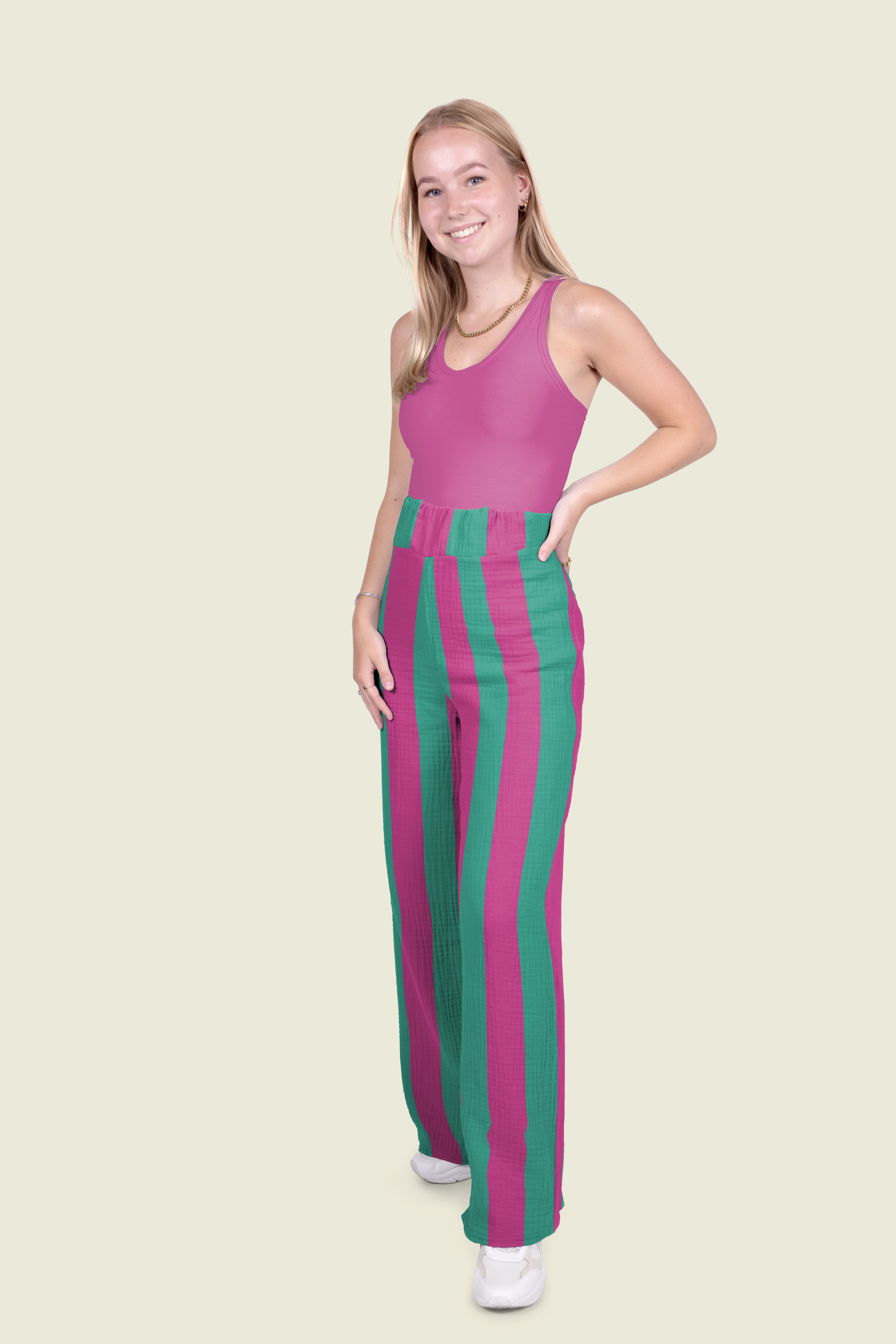 Musselin – Maribel mit Streifen in Türkis & Pink