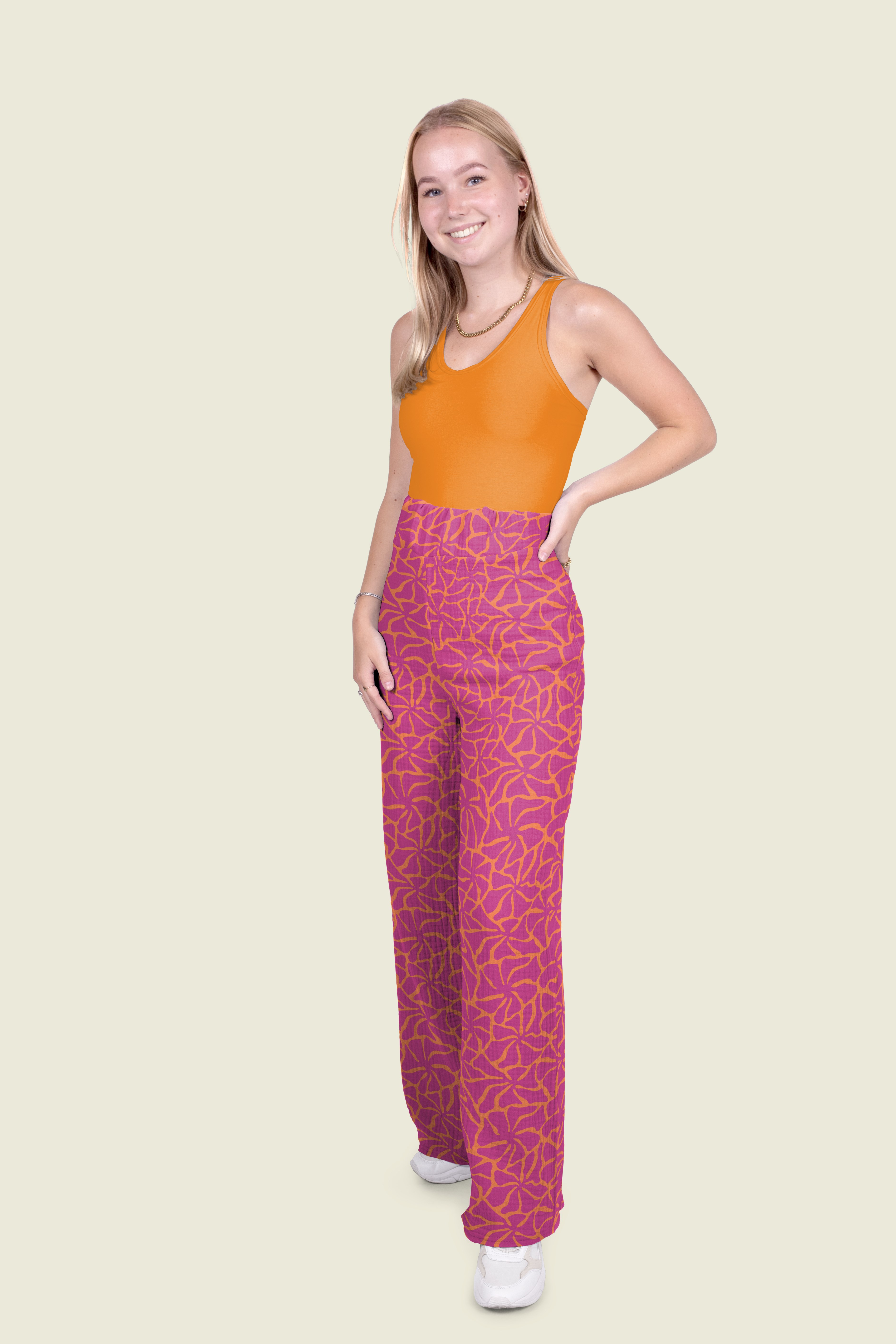 Dieser Musselin bringt Sommerlaune pur! Das markante Design in kräftigem Pink und leuchtendem Orange erinnert an stilisierte Blütenstrukturen und macht jedes Nähprojekt zu einem echten Statement. Der Stoff aus 100 % Baumwolle ist weich, luftig und hautfreundlich – ideal für Kleidung und Accessoires mit trendigem Flair.
