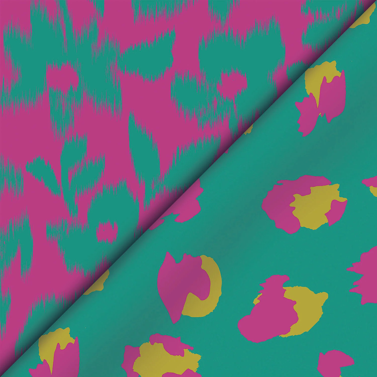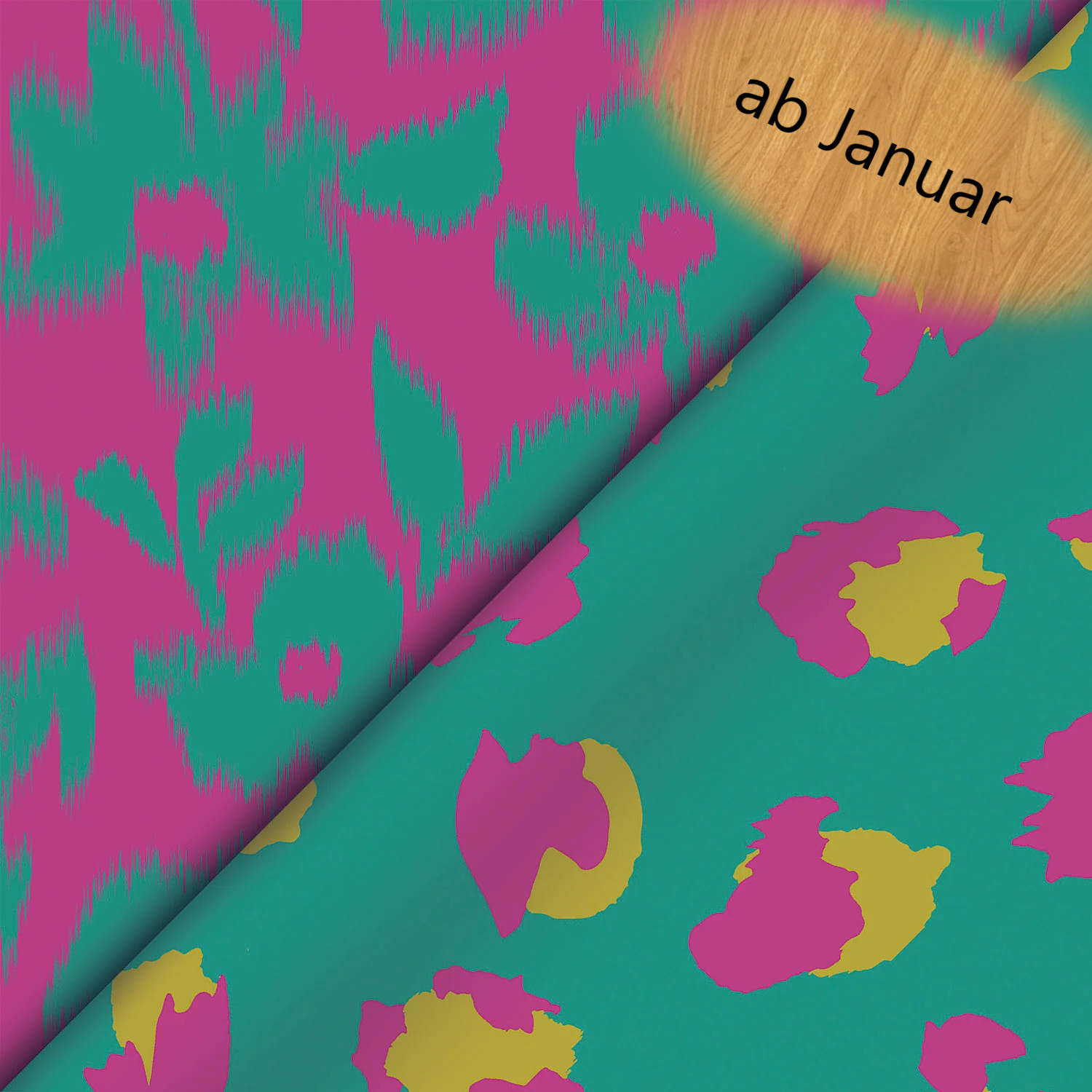 Ein Highlight für alle Musselin-Fans: Der doppellagige Baumwoll-Musselin „Maribel“ vereint zwei ausdrucksstarke Designs in einem Stoff. Die eine Seite zeigt ein lebendiges Pinselmuster in Pink und Türkis, die andere ein verspieltes Tupfendesign mit Pink und Gelb – perfekt für kreative, beidseitige Nähprojekte.