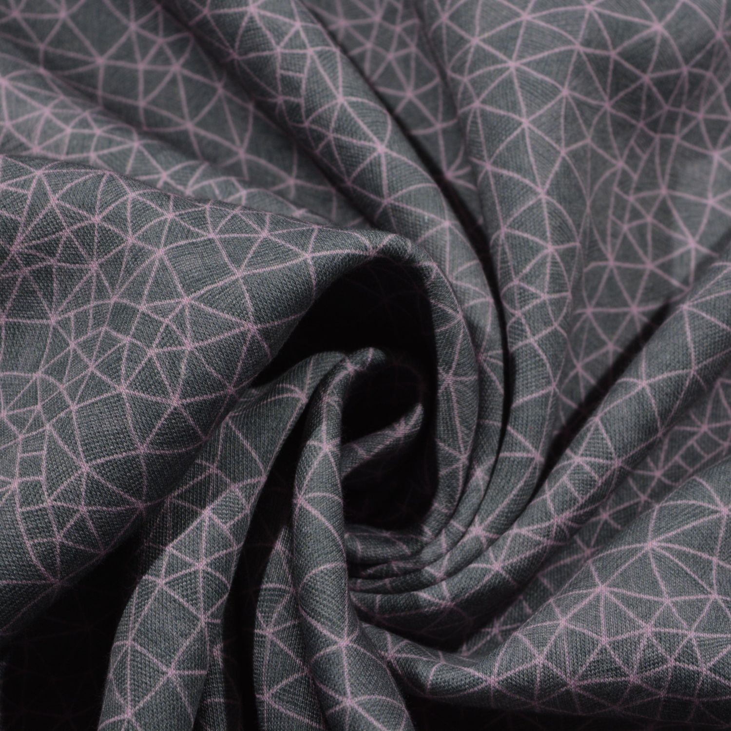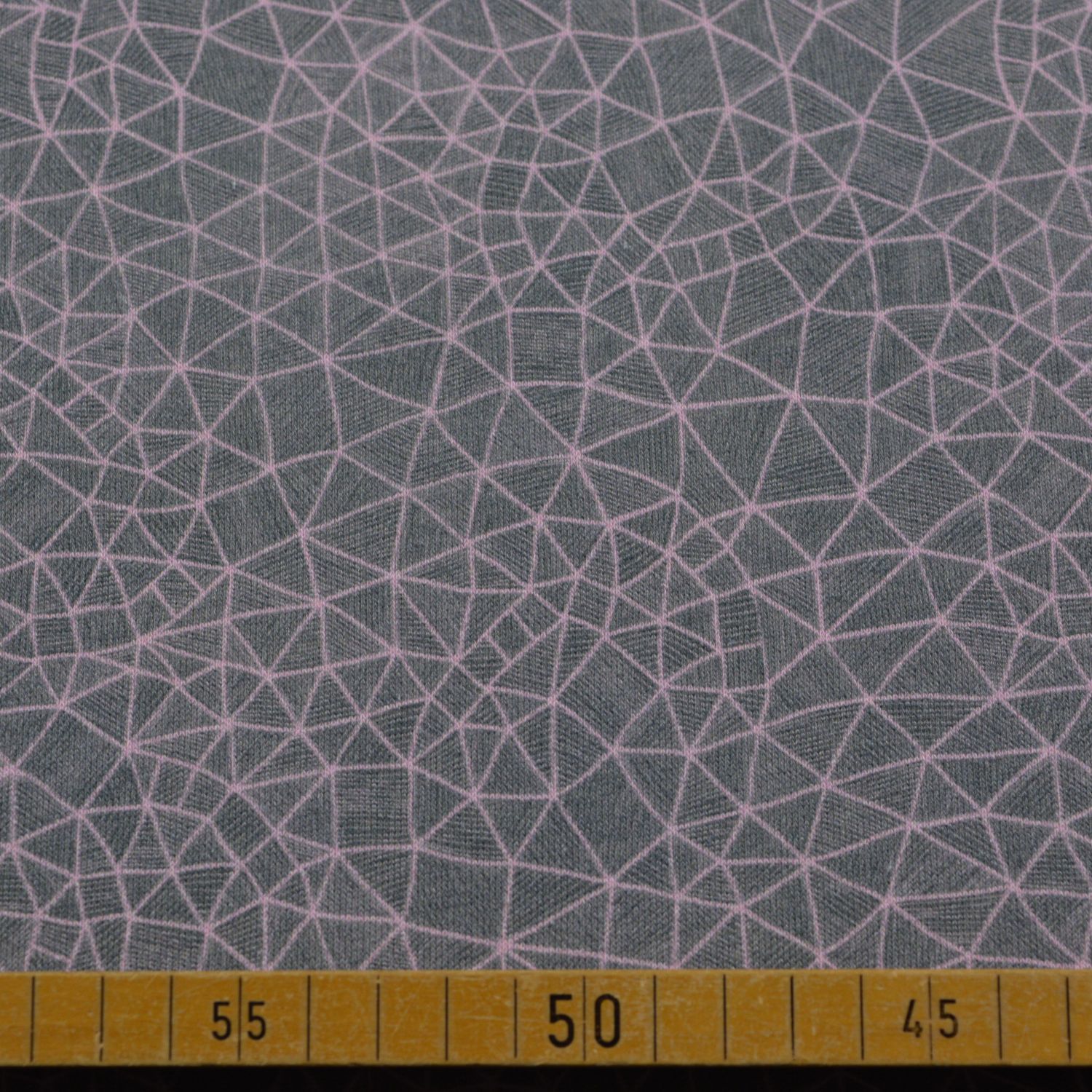 Moderner Sweatstoff mit feinen, rosa Linien auf grauem Grund. Das grafische Design wirkt zeitgemäß und passt zu Freizeit-Mode und Accessoires.