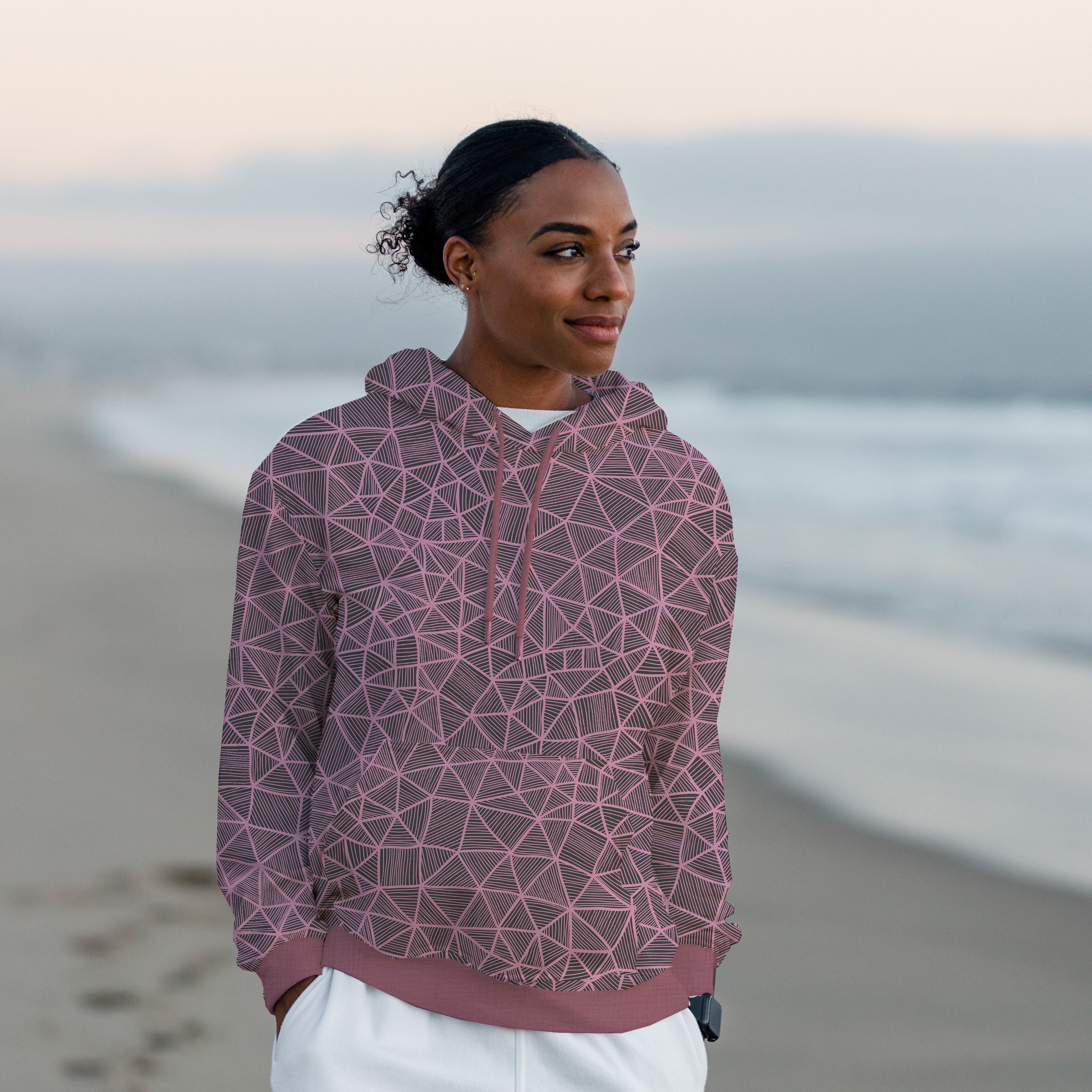 Sweat – Geometrisches Linienmuster in Rosa auf Grau