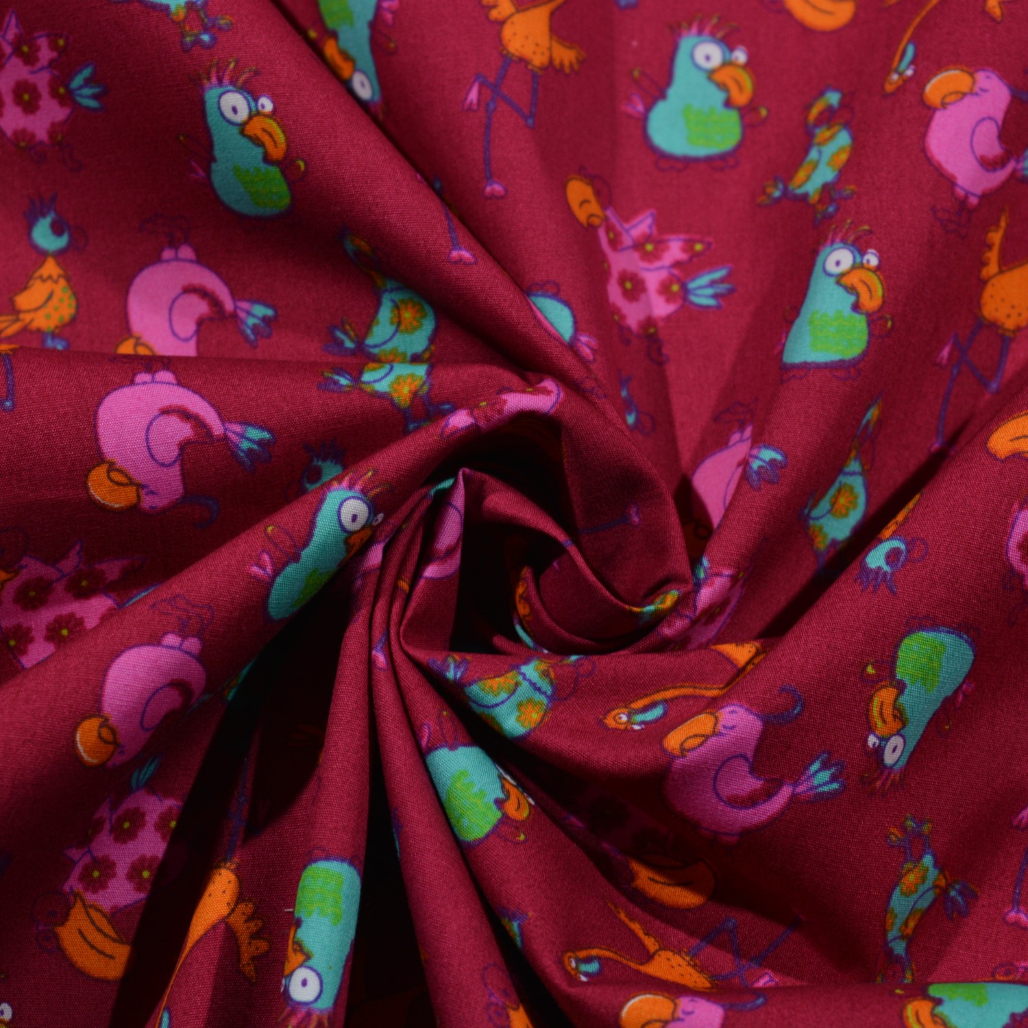 Dieser farbenfrohe Baumwollstoff mit einem humorvollen Tiermuster in lebendigen Pink-, Orange- und Grüntönen auf bordeauxrotem Hintergrund ist ideal für kreative Nähprojekte. Die verspielten, detailreichen Figuren machen diesen Stoff perfekt für Kinderkleidung, Kissen, Patchwork, Dekorationen oder originelle Accessoires. Durch seine hochwertige 100% Baumwollzusammensetzung ist der Stoff hautfreundlich, weich, pflegeleicht und atmungsaktiv. Mit einer Breite von 140 cm und einem Gewicht von 110 g/m² ist er vielseitig einsetzbar und angenehm zu verarbeiten.