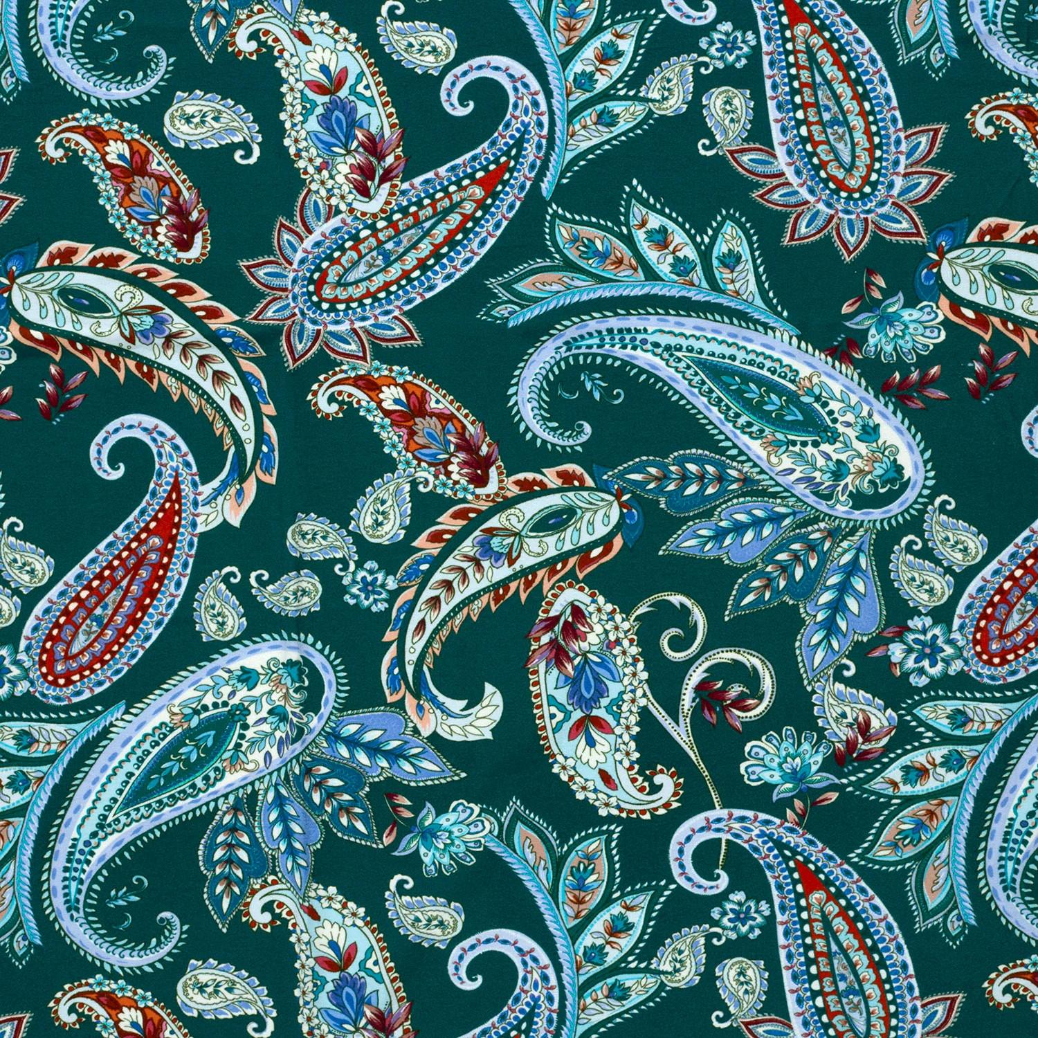 Viskose Jersey – Paisley-Design auf Dunkelgrün